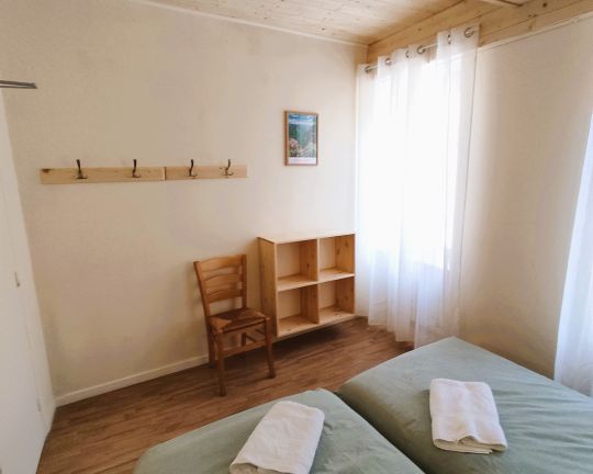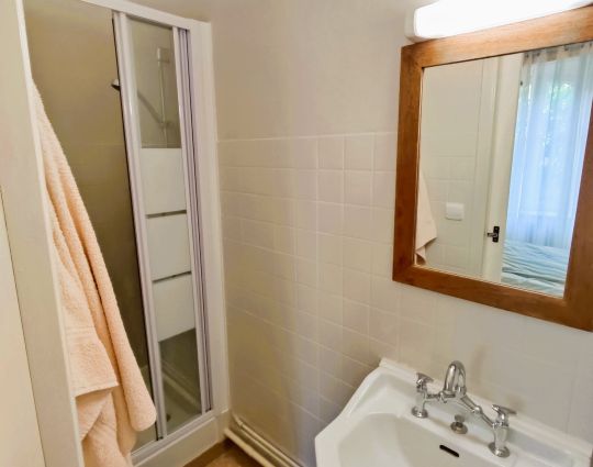 La chambre se compose de 2 lits individuels et une salles de bain avec douche. Les WC sont sur le palier.