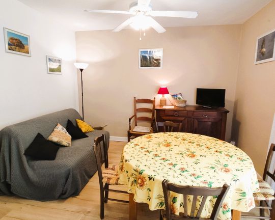 Les équipements : 1 canapé lit, WIFI, TV, machine à café filtre, grille pain, bouilloire, plaque de cuisson, four micro-onde, réfrigérateur avec compartiment congélateur.